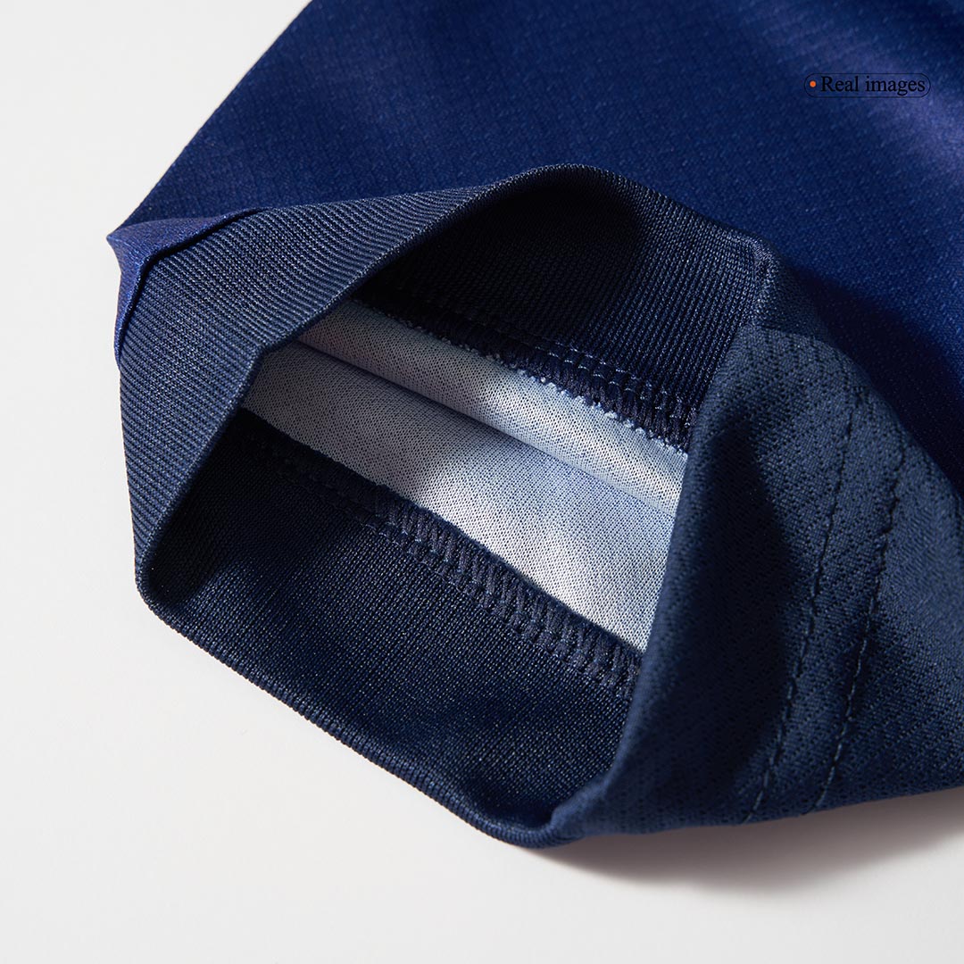 La version "Joueur" est identique à celle portée en match, plus ajustée et technique pour la performance. La version "Supporter" est conçue pour le confort quotidien avec une coupe plus standard. Les écussons sont souvent thermocollés sur la version Joueur et brodés sur la version Supporter pour plus de durabilité.