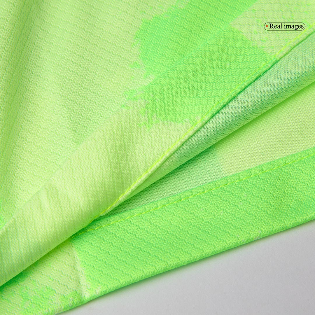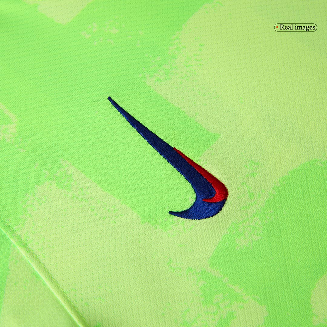 La version "Joueur" est identique à celle portée en match, plus ajustée et technique pour la performance. La version "Supporter" est conçue pour le confort quotidien avec une coupe plus standard. Les écussons sont souvent thermocollés sur la version Joueur et brodés sur la version Supporter pour plus de durabilité.