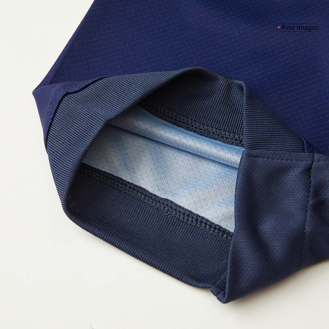 La version "Joueur" est identique à celle portée en match, plus ajustée et technique pour la performance. La version "Supporter" est conçue pour le confort quotidien avec une coupe plus standard. Les écussons sont souvent thermocollés sur la version Joueur et brodés sur la version Supporter pour plus de durabilité.