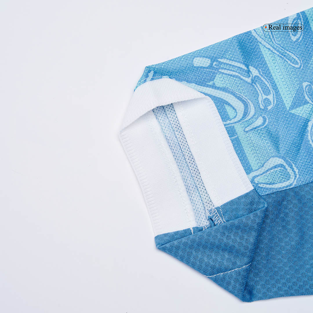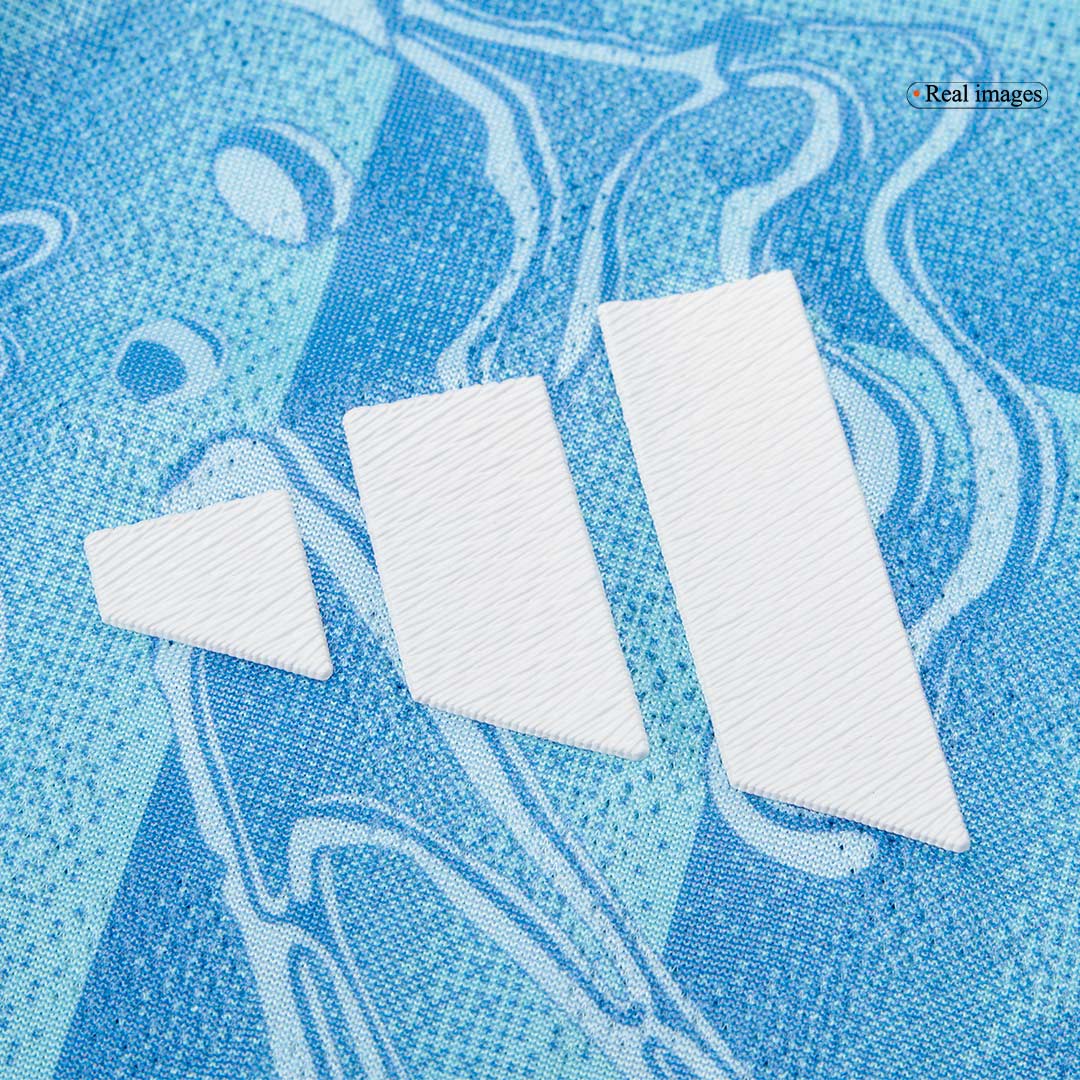 La version "Joueur" est identique à celle portée en match, plus ajustée et technique pour la performance. La version "Supporter" est conçue pour le confort quotidien avec une coupe plus standard. Les écussons sont souvent thermocollés sur la version Joueur et brodés sur la version Supporter pour plus de durabilité.