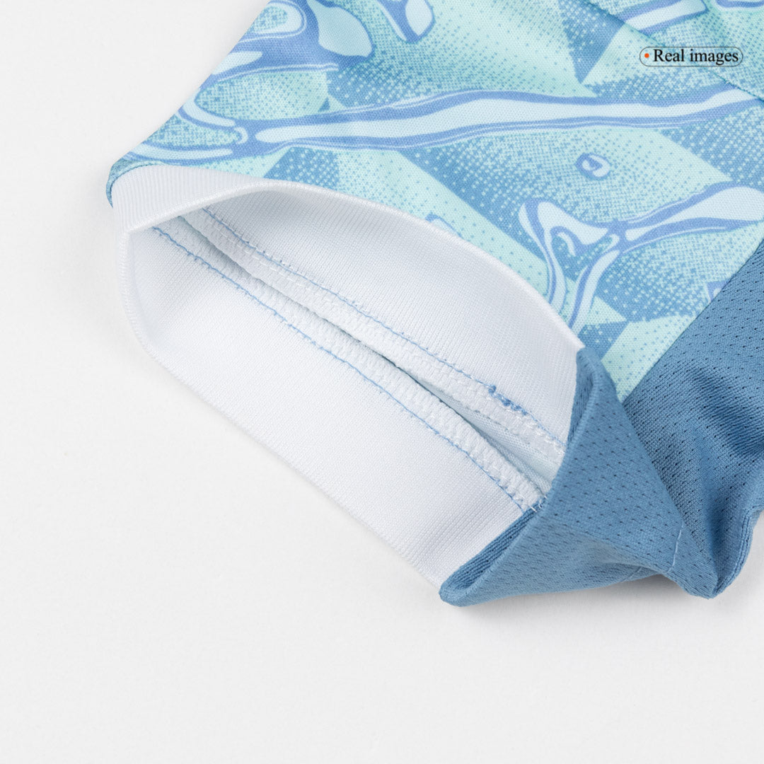Ce maillot est fabriqué en polyester recyclé. Pour en prendre soin, lavez-le à la main, à l'envers et à l'eau froide. N'utilisez jamais d'eau de javel ou d'adoucissant et ne repassez pas sur les logos ou le flocage. Laissez-le sécher à l'air libre pour une durabilité maximale.