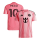 Rose signature à bandes ton sur ton, écusson du club et marquage #10 contrasté. Logos noirs, col rond moderne et épaules à bandes pour une silhouette premium sur et hors du terrain.