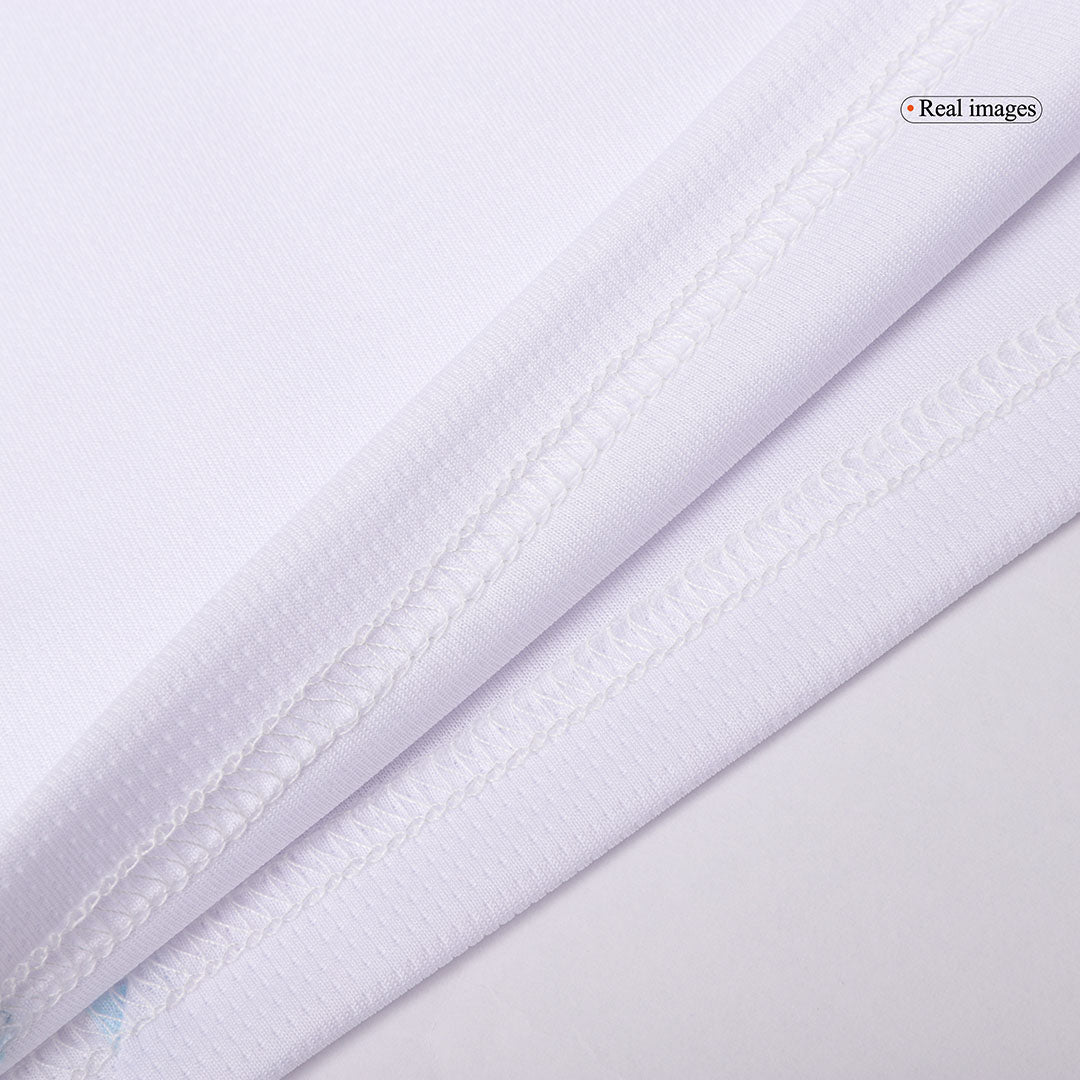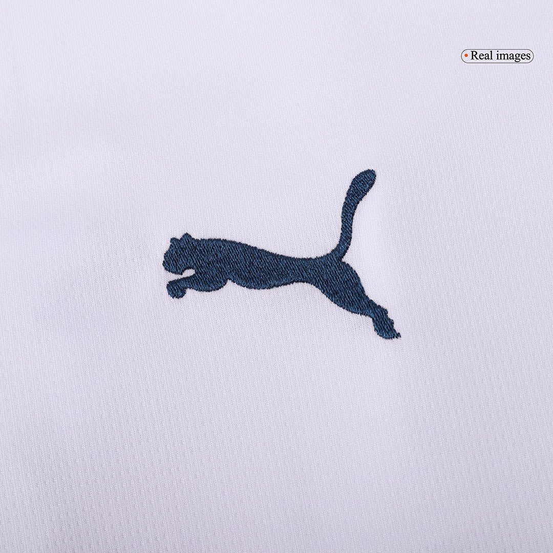La version "Joueur" est identique à celle portée en match, plus ajustée et technique pour la performance. La version "Supporter" est conçue pour le confort quotidien avec une coupe plus standard. Les écussons sont souvent thermocollés sur la version Joueur et brodés sur la version Supporter pour plus de durabilité.