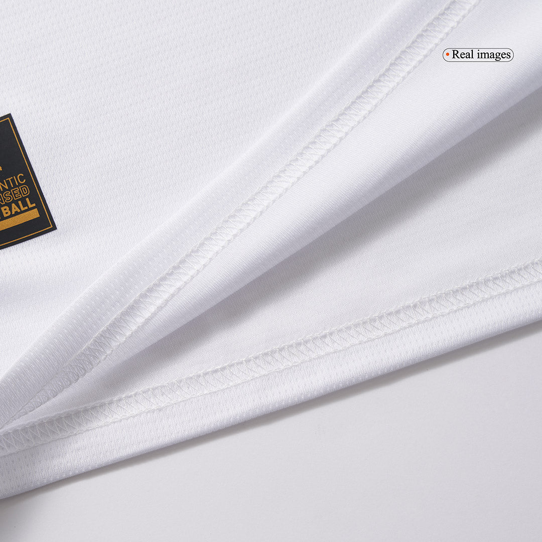 La version "Joueur" est identique à celle portée en match, plus ajustée et technique pour la performance. La version "Supporter" est conçue pour le confort quotidien avec une coupe plus standard. Les écussons sont souvent thermocollés sur la version Joueur et brodés sur la version Supporter pour plus de durabilité.