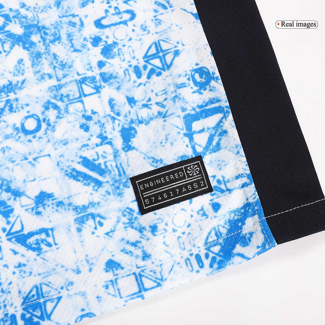 La version "Joueur" est identique à celle portée en match, plus ajustée et technique pour la performance. La version "Supporter" est conçue pour le confort quotidien avec une coupe plus standard. Les écussons sont souvent thermocollés sur la version Joueur et brodés sur la version Supporter pour plus de durabilité.