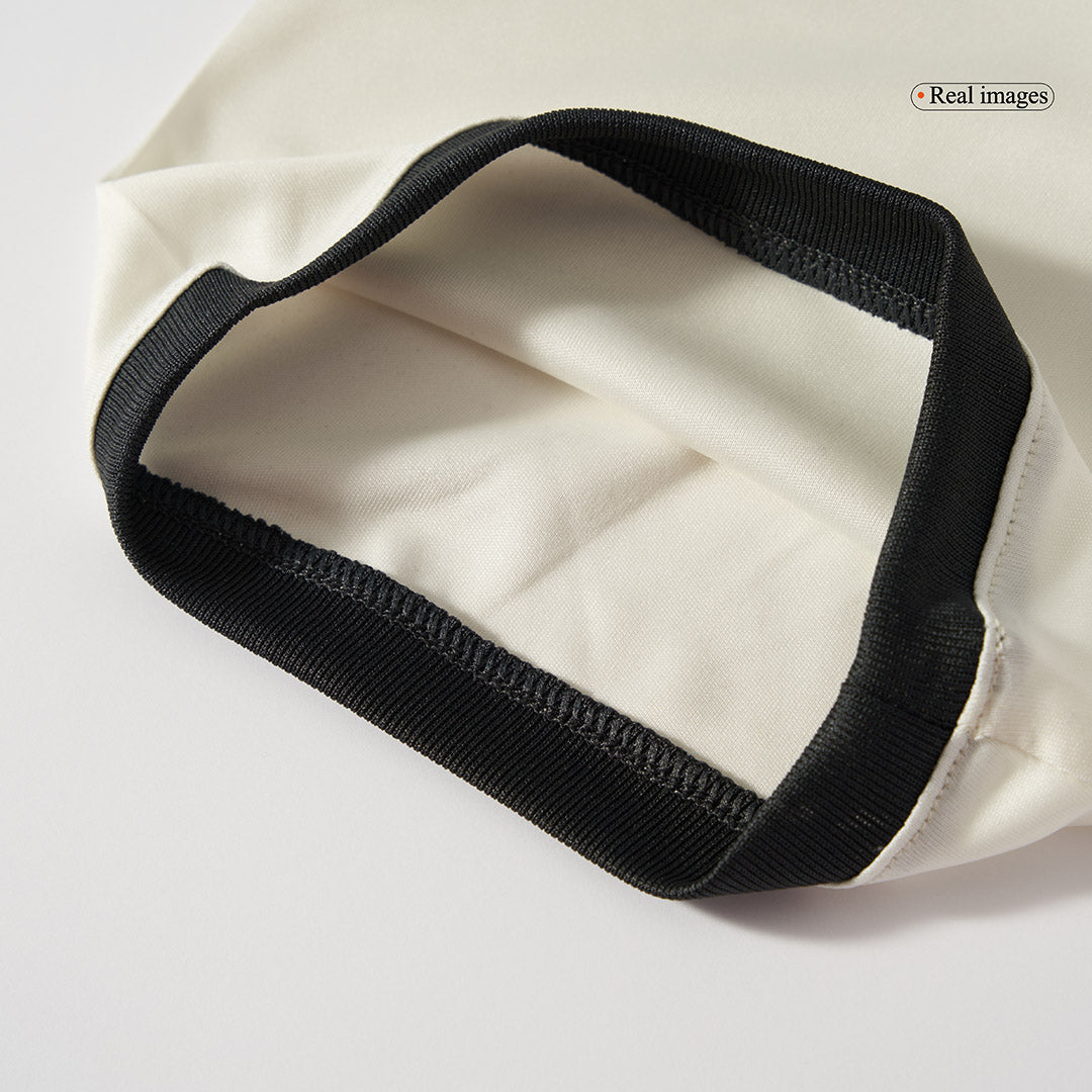 La version "Joueur" est identique à celle portée en match, plus ajustée et technique pour la performance. La version "Supporter" est conçue pour le confort quotidien avec une coupe plus standard. Les écussons sont souvent thermocollés sur la version Joueur et brodés sur la version Supporter pour plus de durabilité.