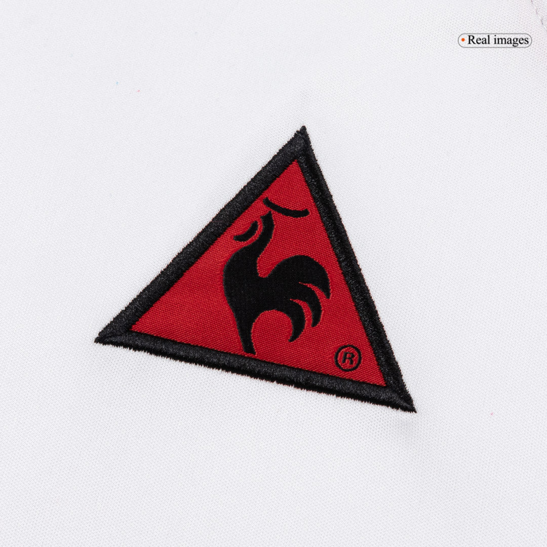 La version "Joueur" est identique à celle portée en match, plus ajustée et technique pour la performance. La version "Supporter" est conçue pour le confort quotidien avec une coupe plus standard. Les écussons sont souvent thermocollés sur la version Joueur et brodés sur la version Supporter pour plus de durabilité.