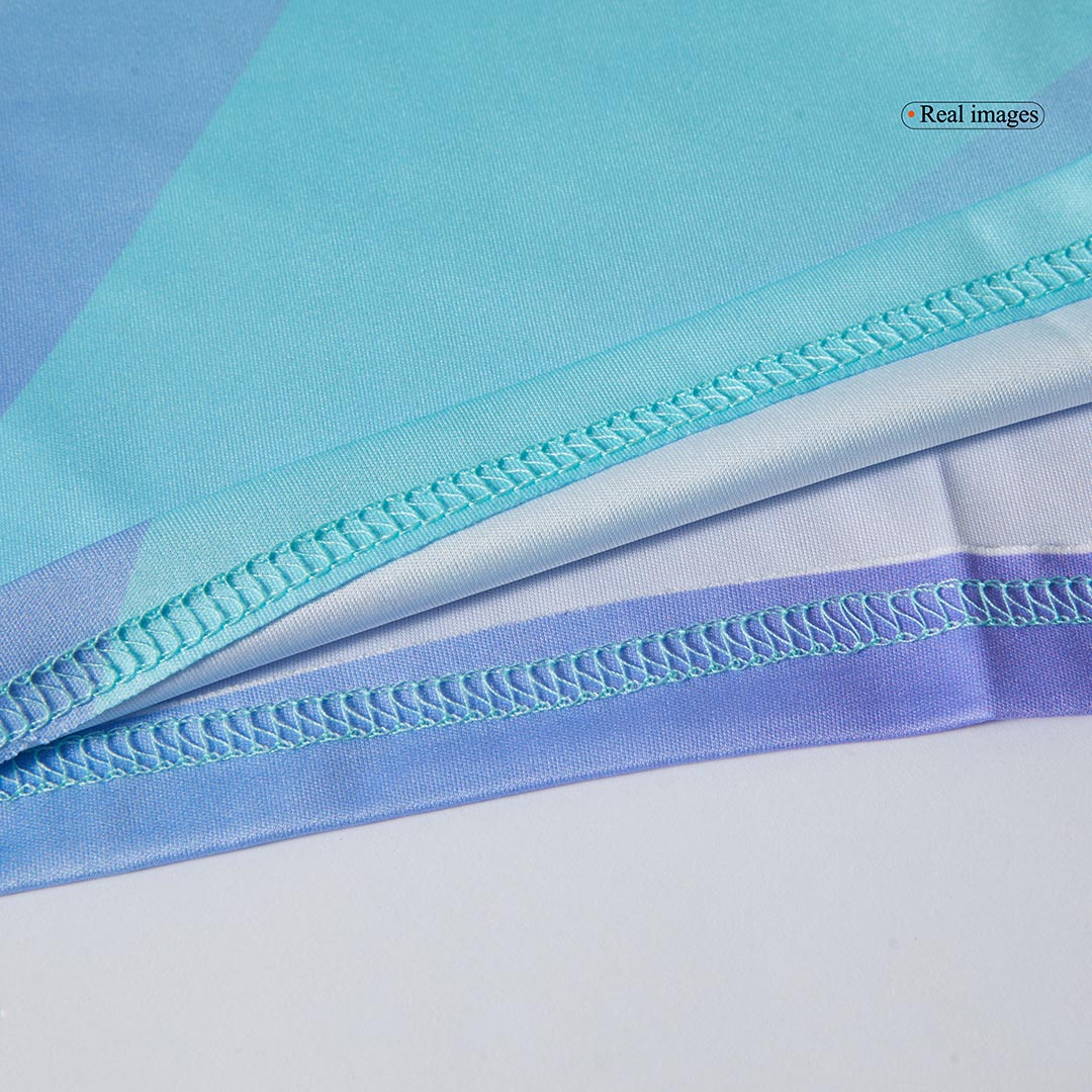 La version "Joueur" est identique à celle portée en match, plus ajustée et technique pour la performance. La version "Supporter" est conçue pour le confort quotidien avec une coupe plus standard. Les écussons sont souvent thermocollés sur la version Joueur et brodés sur la version Supporter pour plus de durabilité.